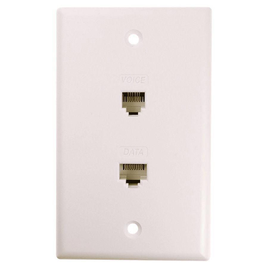 CAT3 JACK (VOICE) + CAT5 JACK – WALL PLATE – SINGLE GANG – WHITE – 10 EA/PER PACK