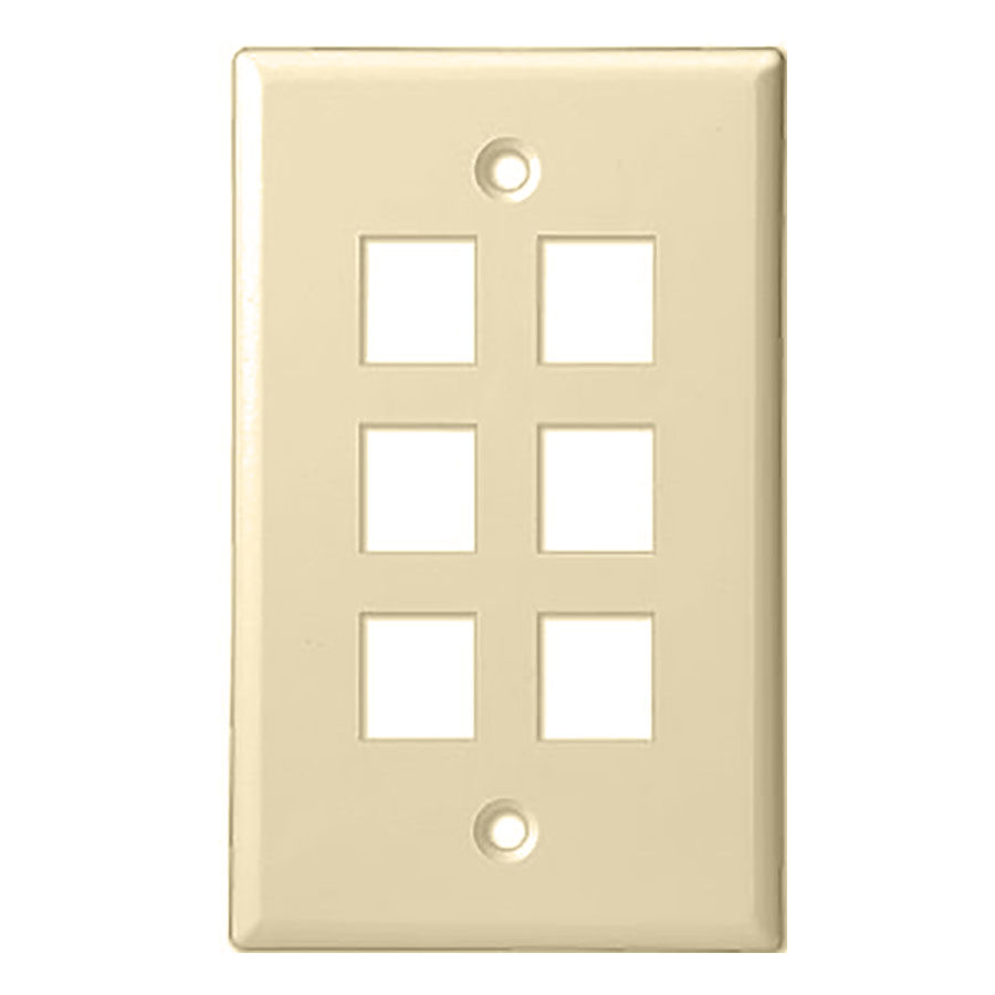 6 PORT- KEYSTONE WALL PLATE- STANDARD SINGLE GANG, UL – IVORY – 10 EA/PER PACK