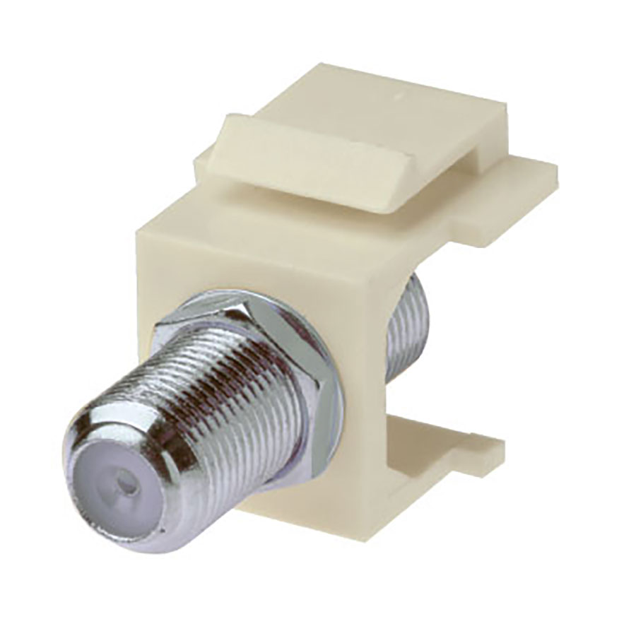 1 GHz F-Type 75 ohm – Keystone Snap-In Insert, Female to Female, Nickle Plated, UL – Light ALmond- 50 ea/per Bag