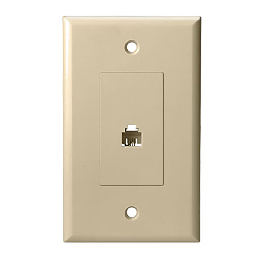 DECORATOR STYLE WALL PLATE – SINGLE GANG + 4C TELEPHONE FLUSH JACK INSERT – IVORY