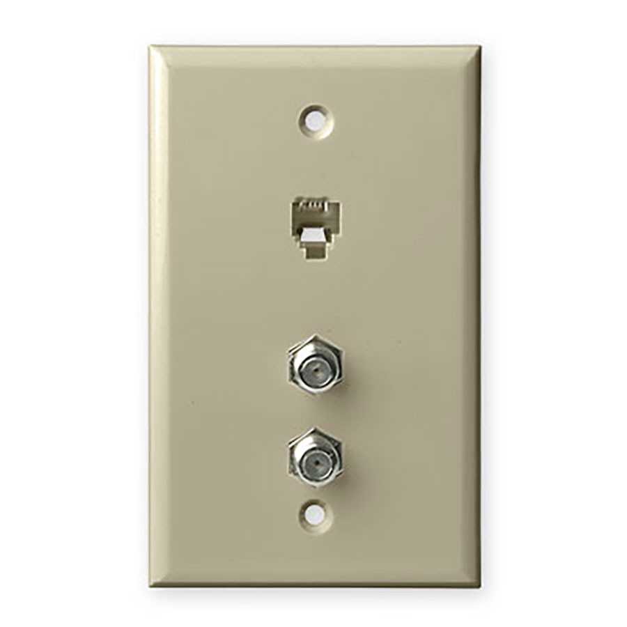 4C TELEPHONE + 2x CATV F-TYPE – WALL PLATE – IVORY – 10 EA/PER PACK