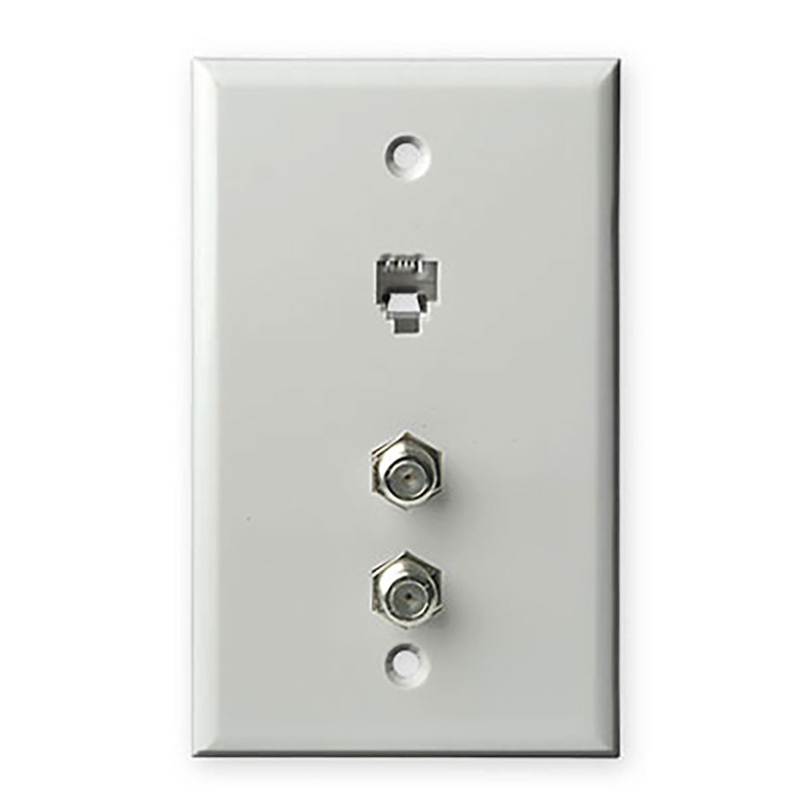 4C TELEPHONE + 2x CATV F-TYPE – WALL PLATE – WHITE – 10 EA/PER PACK