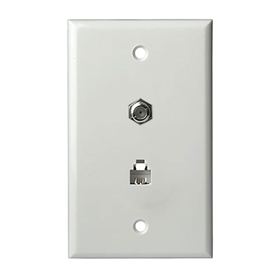 MIDSIZE TV + TELEPHONE COMBO WALL PLATE – WHITE – 1 EA/10PC PACK