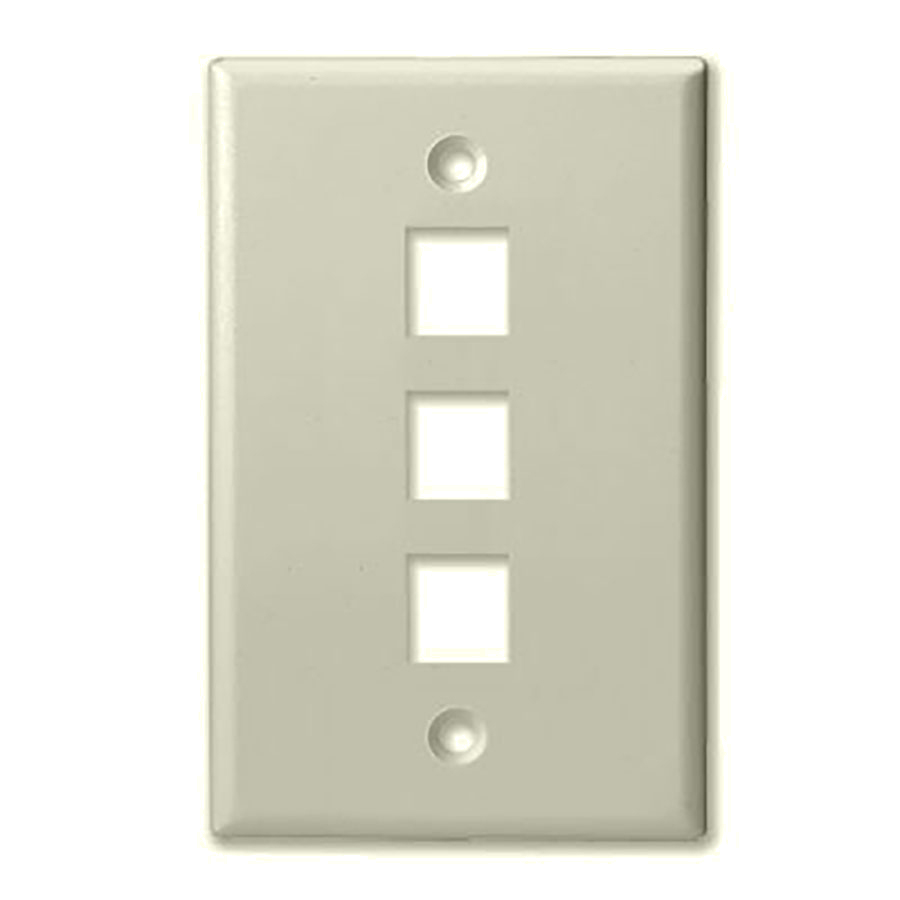3 PORT- MID-SIZE- KEYSTONE WALL PLATE- SINGLE GANG- UL- ALMOND- 10 EA/PER PACK
