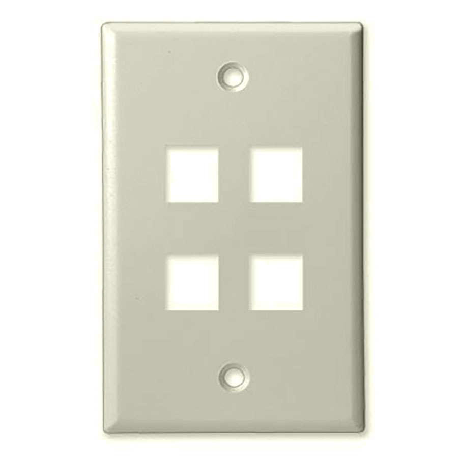 4 PORT- MID-SIZE- KEYSTONE WALL PLATE- SINGLE GANG- UL- ALMOND- 10 EA/PER PACK