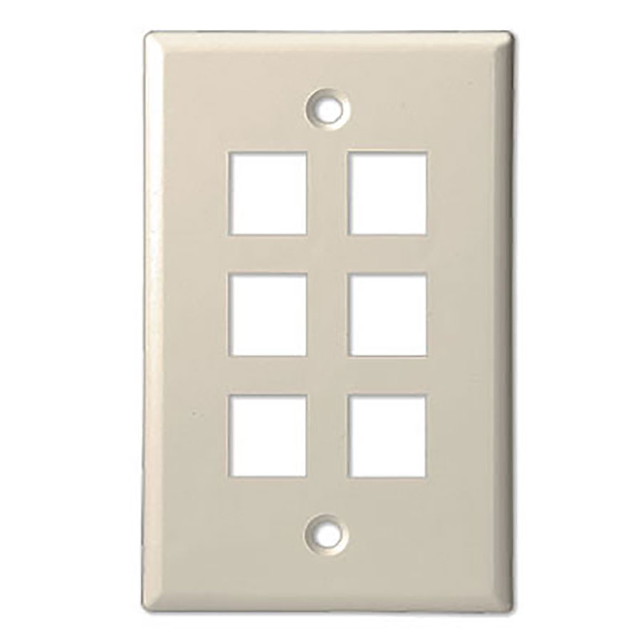 6 PORT- MID-SIZE- KEYSTONE WALL PLATE- SINGLE GANG- UL- LIGHT ALMOND- 10 EA/PER PACK