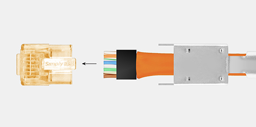 Simply45® strain reliefs are very narrow and are integrated into the RJ45 plug during the crimping process. Simply45 strain reliefs are the same width as the plug itself so they provide excellent room between panel ports allowing easy access to plug.