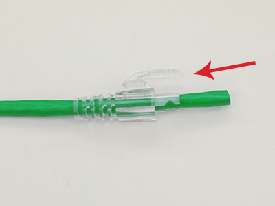 If using strain relief/boot, slide the boot up and into the back of the plug until the boot clip covers the top of the plug clip.