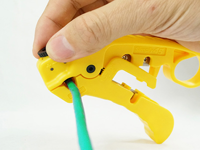 Using the Adjustable Cable Stripper (Part: S45-S01YL/S01BL), strip back the cable jacket about 1.5inches (3.8cm)