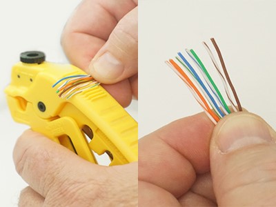 Trim center spline/pair separator as close to the cable jacket as possible without nicking any of the wire conductors.