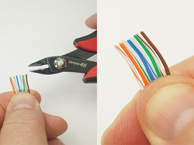 Using a flush cutter, trim the wires straight across so all of the wires are the same length.