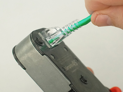 Insert the plug into the crimping socket on the S45-C100/S45-C101 Simply45 pass-through crimper.