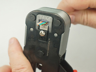 Hint: Be sure cable goes in as far as possible to minimize the exposed untwisted wires inside the plug. Notice the wedge inside the plug stopping the cable.